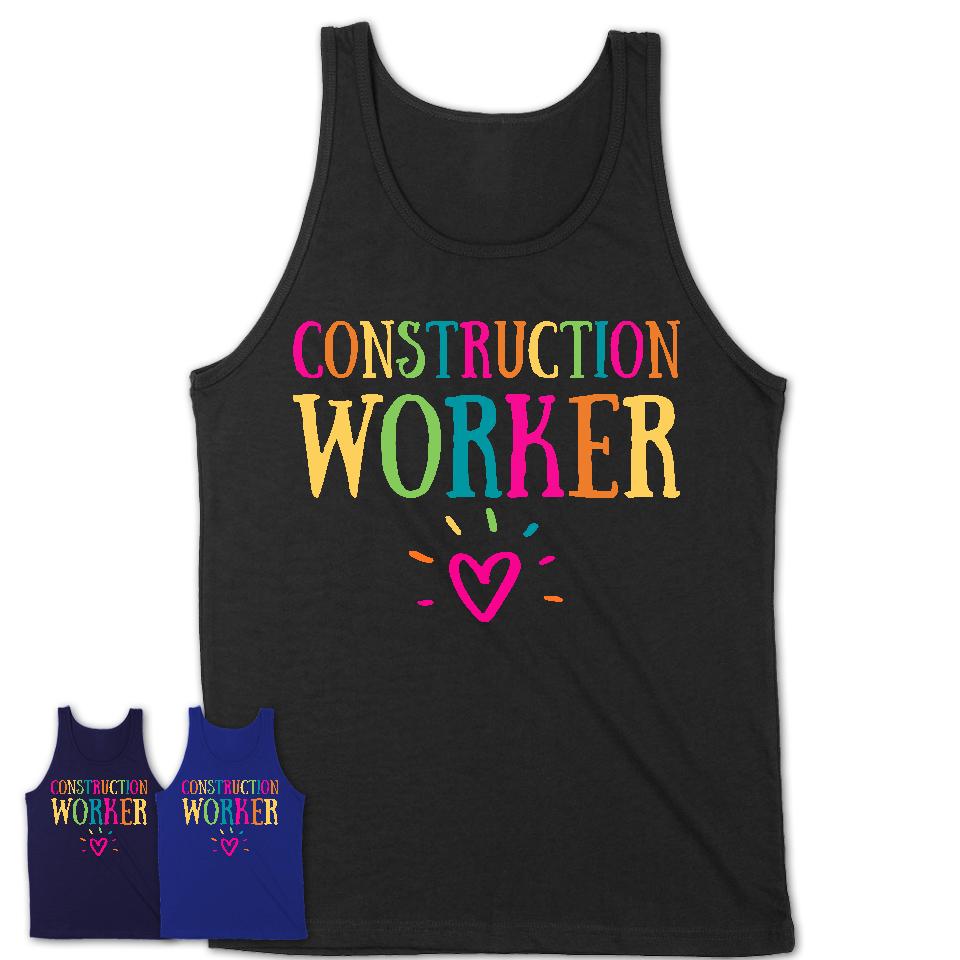 This Construction Worker Rainbow Lettering Heart Shirt, Employee Appreciation Gifts should not miss from your wardrobe. It makes a perfect gift for any Construction Worker around the world. This cute Construction Worker shirt features a heart and rainbow lettering. Also, it is an awesome coworker birthday gift idea or a new job gift for someone. Adorable end of year, Christmas, birthday, thank you, or Construction Worker appreciation gift for Construction Worker.