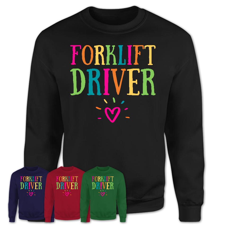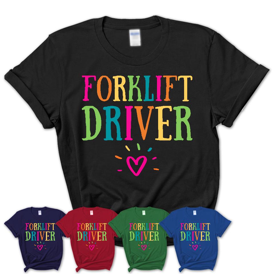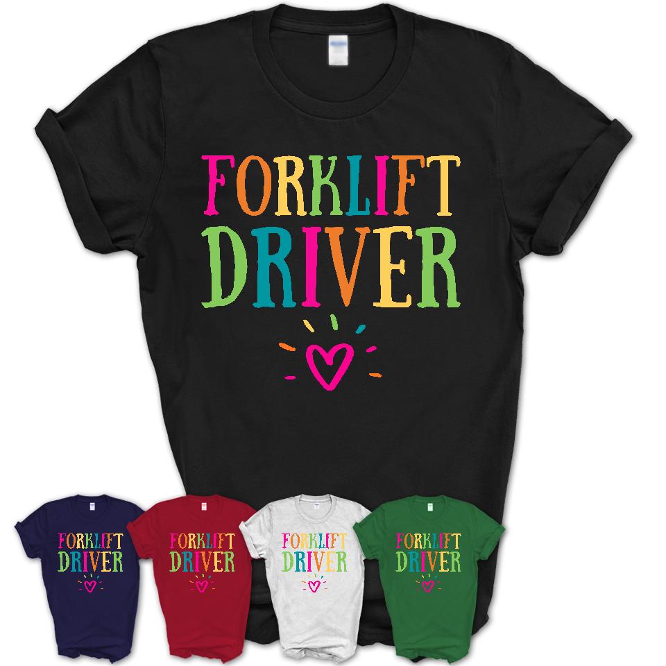 Forklift Driver Rainbow Lettering Heart Shirt, Employee Appreciation Gifts