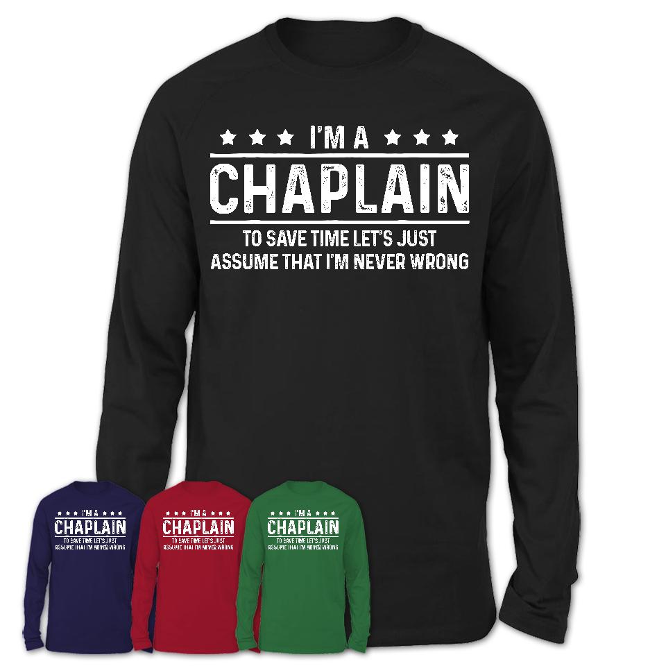 Funny Chaplain Never Wrong T-Shirt, New Job Gift for Coworker