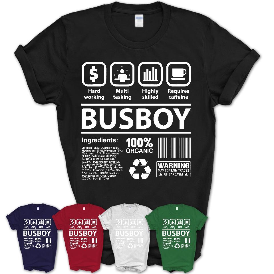 This Busboy shirt should not miss from your collection. It makes a perfect gift for any Busboy around the world. If your job needs hard working, multi tasking, highly skilled, and require caffeine them this shirt is for you. Also, it is an awesome coworker birthday gift idea or a new job gift for someone.