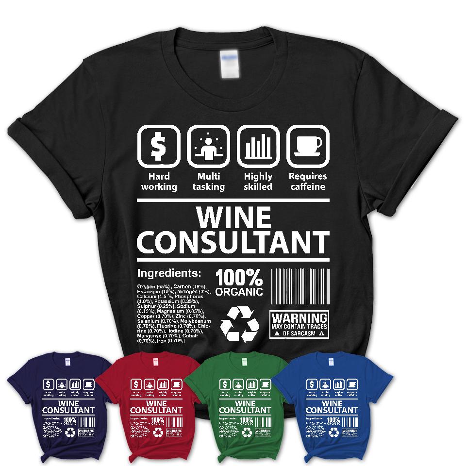 This Wine Consultant shirt should not miss from your collection. It makes a perfect gift for any Wine Consultant around the world. If your job needs hard working, multi tasking, highly skilled, and require caffeine them this shirt is for you. Also, it is an awesome coworker birthday gift idea or a new job gift for someone.