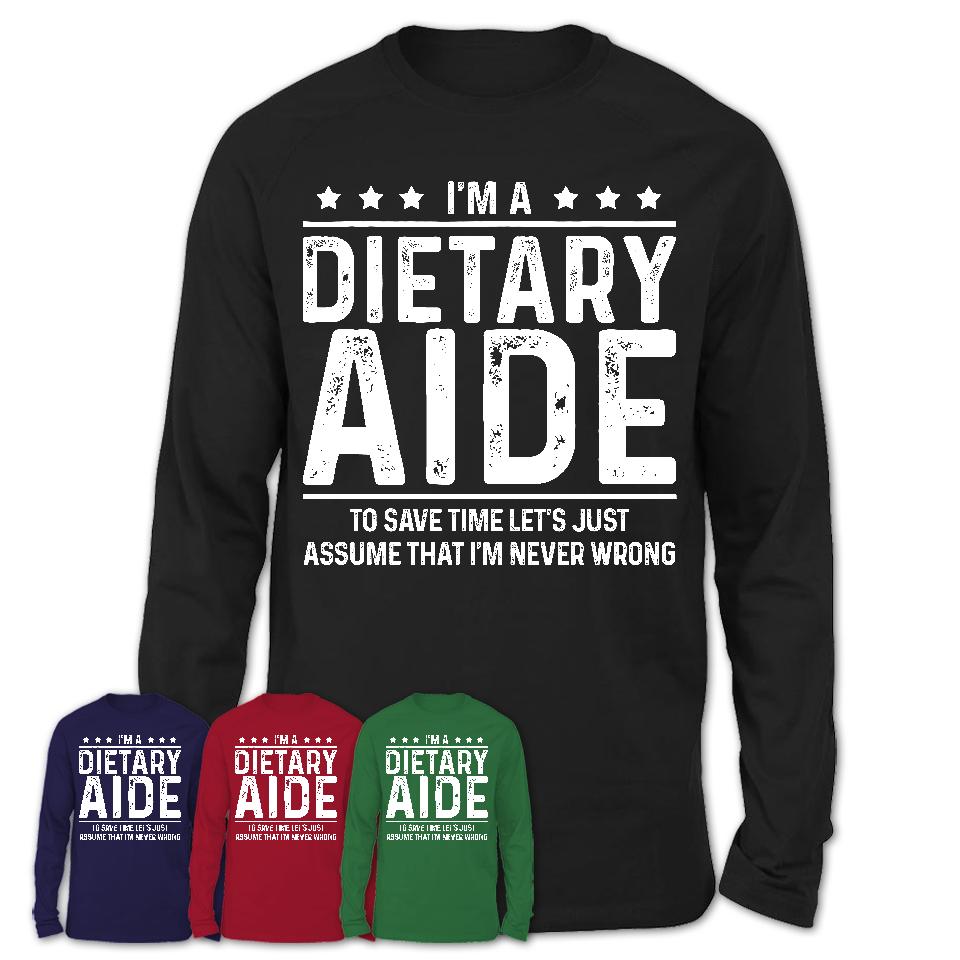 Funny Dietary Aide Never Wrong T-Shirt, New Job Gift for Coworker