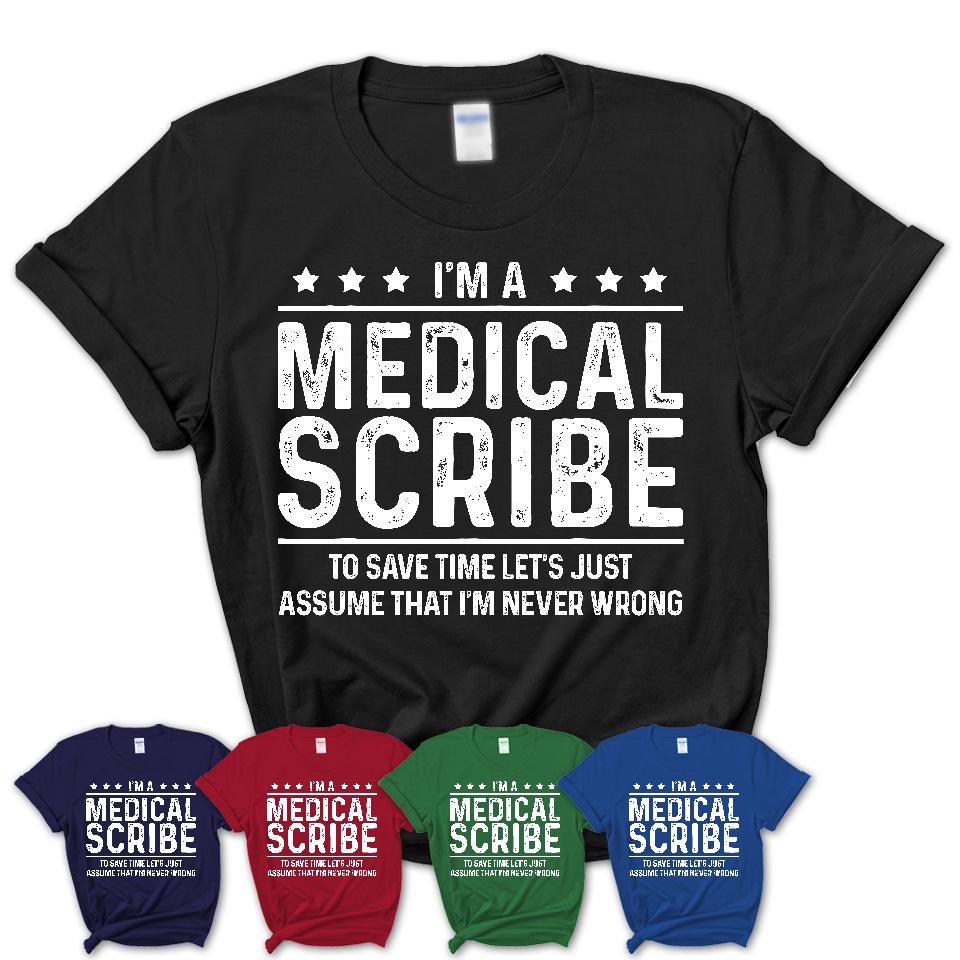 Funny Medical Scribe Never Wrong T-Shirt, New Job Gift for Coworker