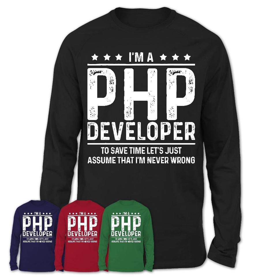 Funny Php Developer Never Wrong T-Shirt, New Job Gift for Coworker