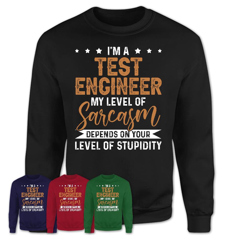 Funny Test Engineer Shirt My Level of Sarcasm Depends on Your Level Of Stupidity T Shirt