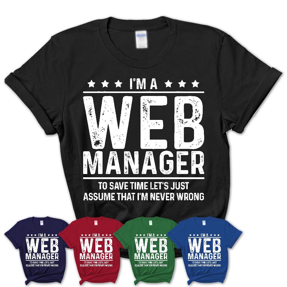 Funny Web Manager Never Wrong T-Shirt, New Job Gift for Coworker