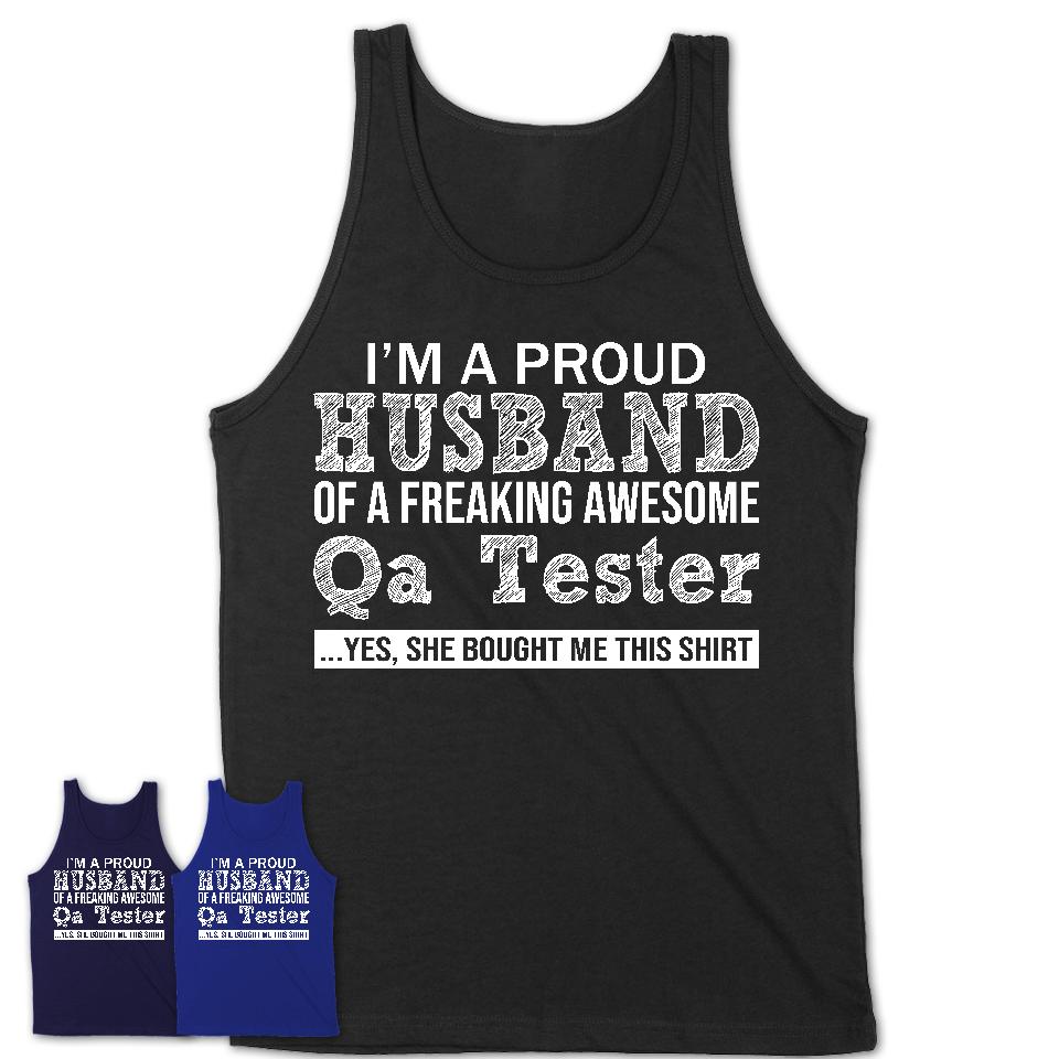 This awesome Qa Tester shirt should not miss from your husband's wardrobe. It makes a proud gift for your husband on Valentine Day or Anniversary. This Qa Tester shirt said "I'm A Proud Husband of A Freaking Awesome Qa Tester". Also, it is an awesome birthday gift idea or a surprise Christmas gift for your husband.