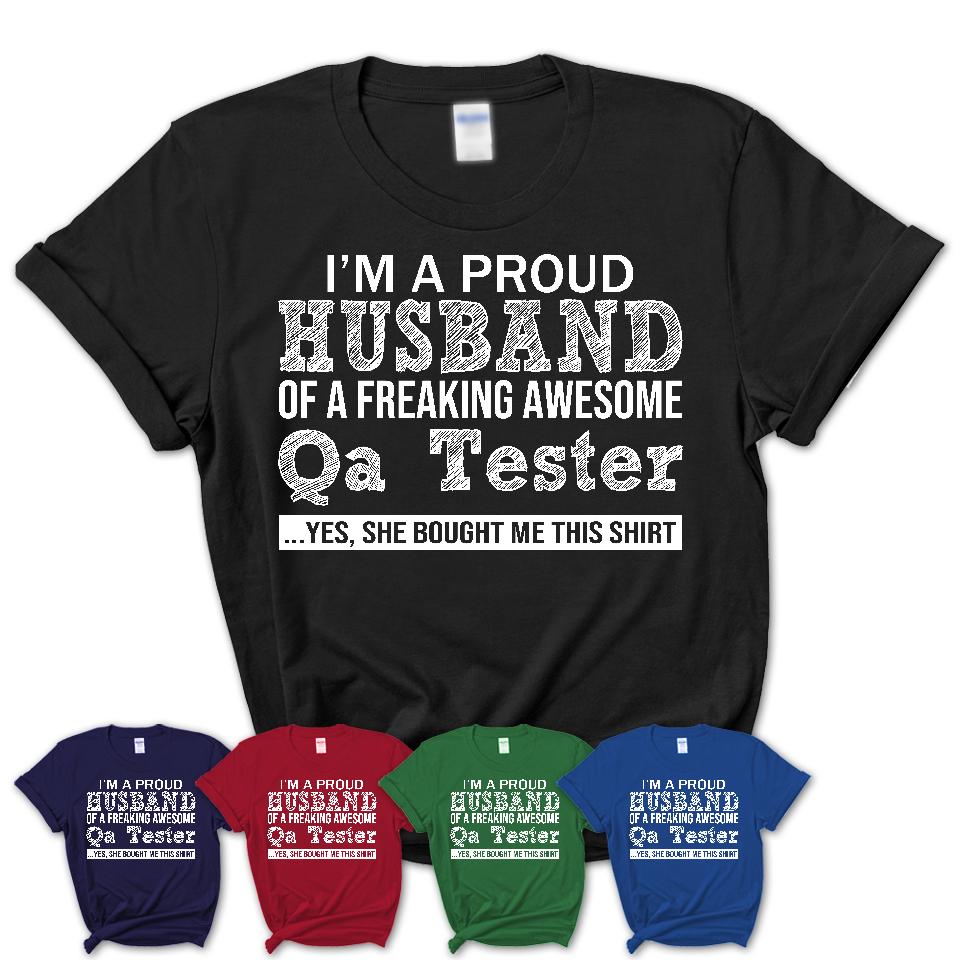 Proud Husband of A Freaking Awesome Qa Tester Wife Shirt, Husband Valentine Gift, Anniversary Couple Shirt
