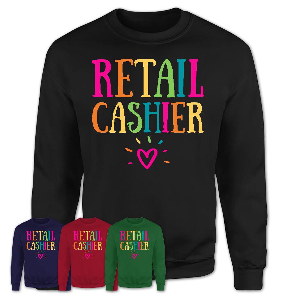 Retail Cashier Rainbow Lettering Heart Shirt, Employee Appreciation Gifts