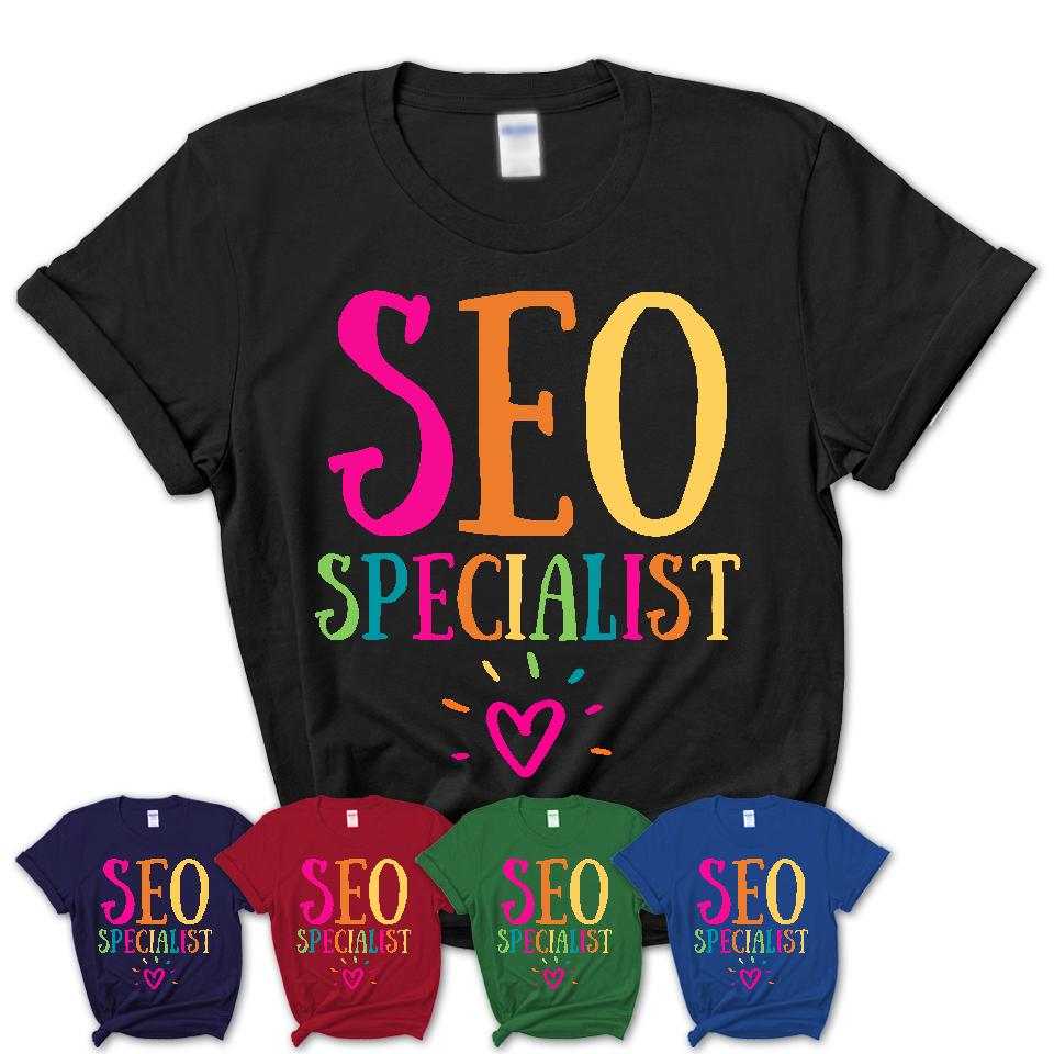 SEO Specialist Rainbow Lettering Heart Shirt, Employee Appreciation Gifts