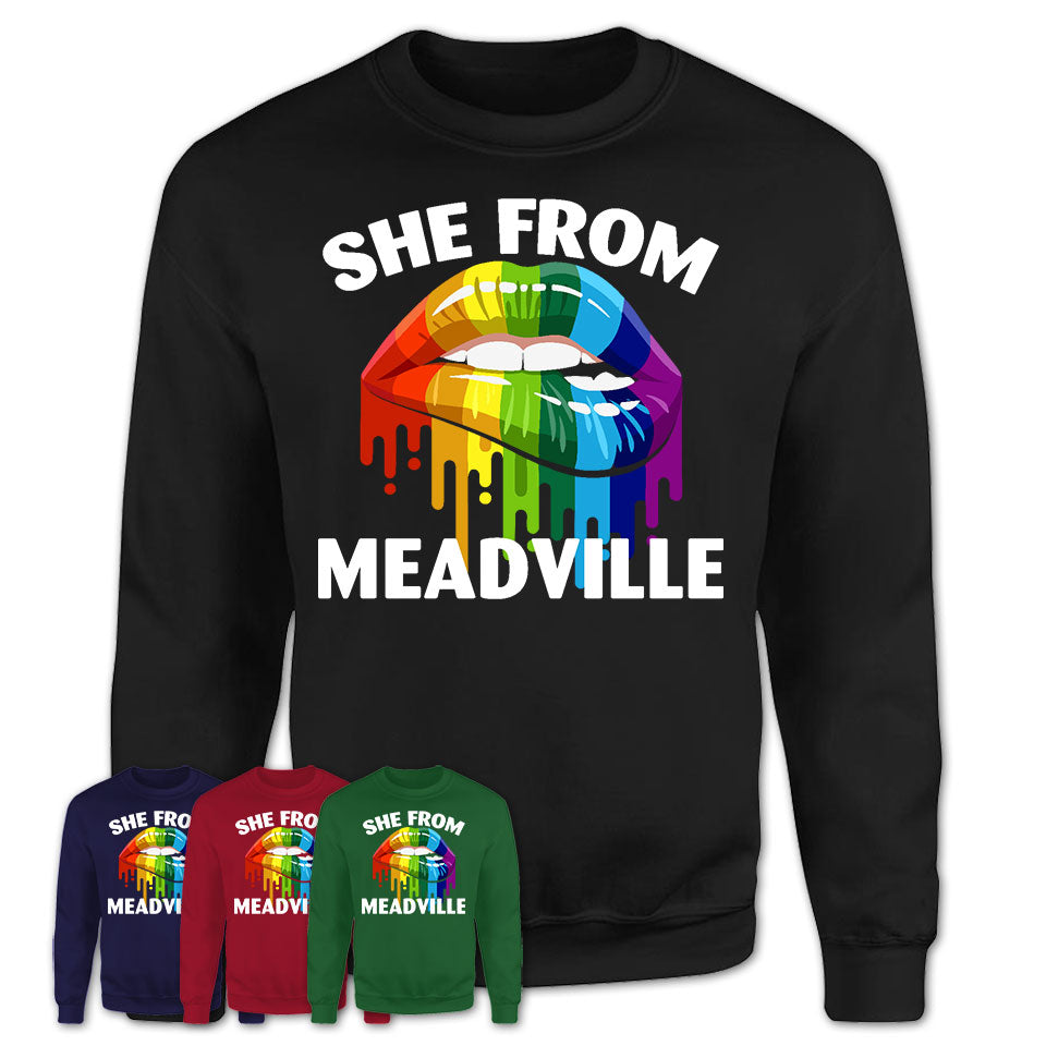 LGBT Pride Gift. We all come from somewhere. We carry that place with us wherever we go. Embrace and recognize the contributions of the hometown that influenced your life with the She From Meadville Pennsylvania T-Shirt LGBT Pride Sexy Lips Gift Shirt. That never leaves our hearts.
