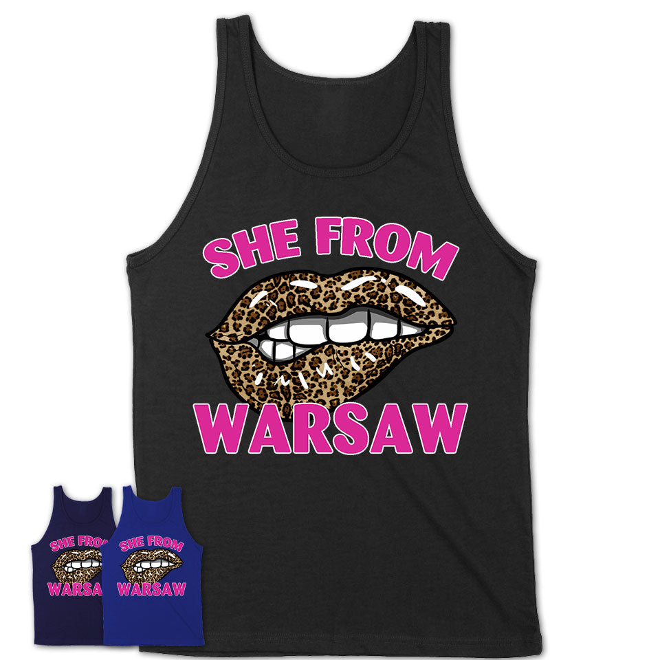 She From Warsaw Indiana Gift Cheetah Leopard Sexy Lips Shirt